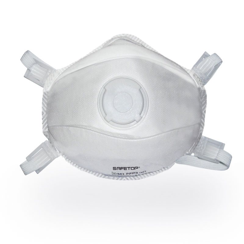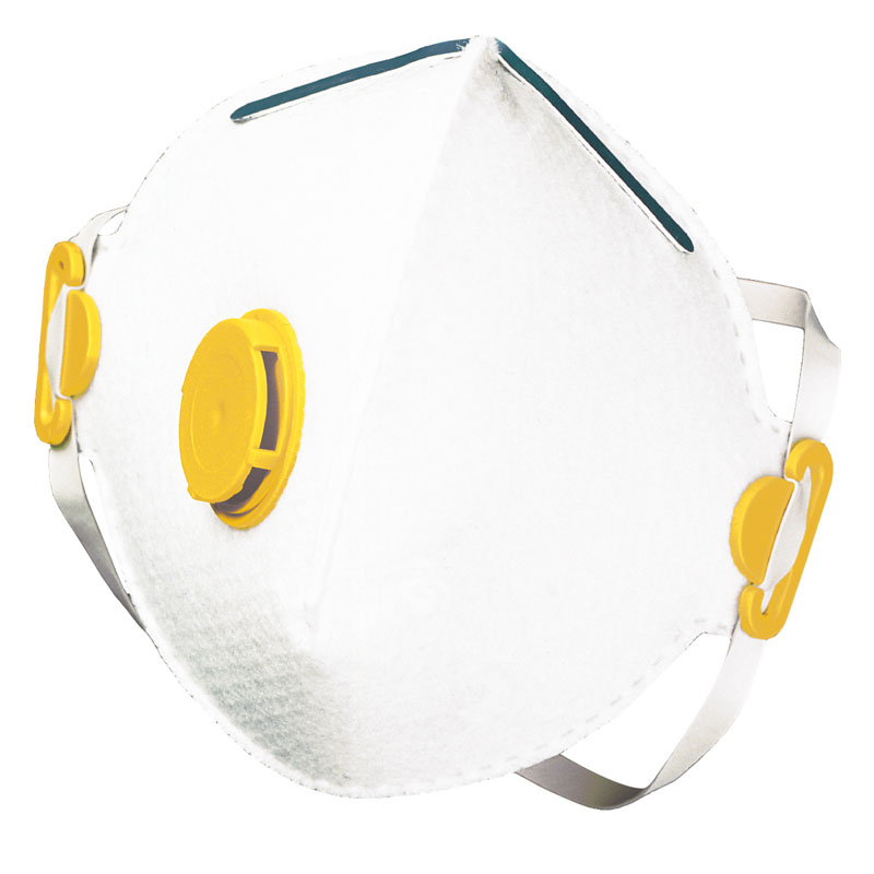 Mascarilla preformada FFP3, de polipropileno, con válvula de exhalación.