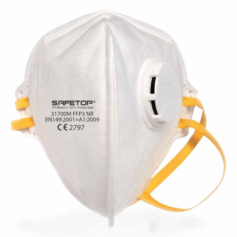 Mascarilla plegable vertical FFP3, con válvula de exhalación.